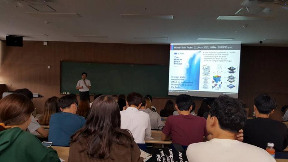 한양대 생체공학과 임창환교수님의 "웨어러블 뇌-기계 인터페이스". 어려운 뇌과학분야의 연구동향을 쉽고 재미있게 강의해 주셨답니다. 너무 좋은 시간이었습니다~ 한양대에서 강의우수교수로 선정되실만 합니다~~