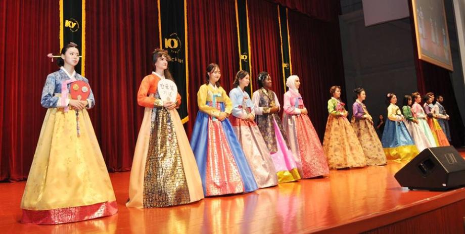 김희수 총장님의 축사에 이어, 외국인 유학생들과 한국학생들이 함께 한글로 만든 한복 패션쇼, 도전 골든벨과 같은 행사가 있었습니다.