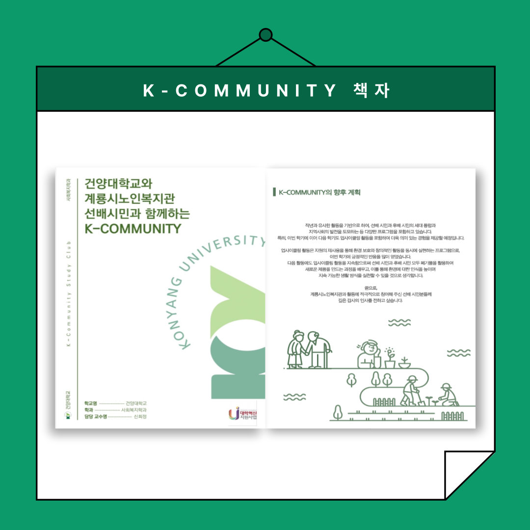 건양대학교 사회복지학과 학생들이 계룡시노인복지관에 방문하여 선배시민에게 K-Community 활동 책자를 전달하였습니다. |