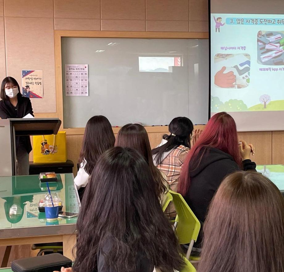 2021.03.25 목 <재학생이 알려주는 학습법> ※ 전염병 확산 예방법에 따라 창문을 모두 열고, 모두 마스크를 착용하고 진행하였습니다.