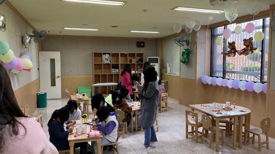 1회 공연과 2회 공연에 각각 3곳의 어린이집을 초청하여 총 6곳의 어린이집에서 블랙라이트 인형극을 보러 와주었습니다. 블랙라이트 인형극이 끝난 후에는 에코백 만들기, 나무 액자 꾸미기 두 개의 부스체험을 하고 포토존에서 사진을 찍고 돌아갔습니다.