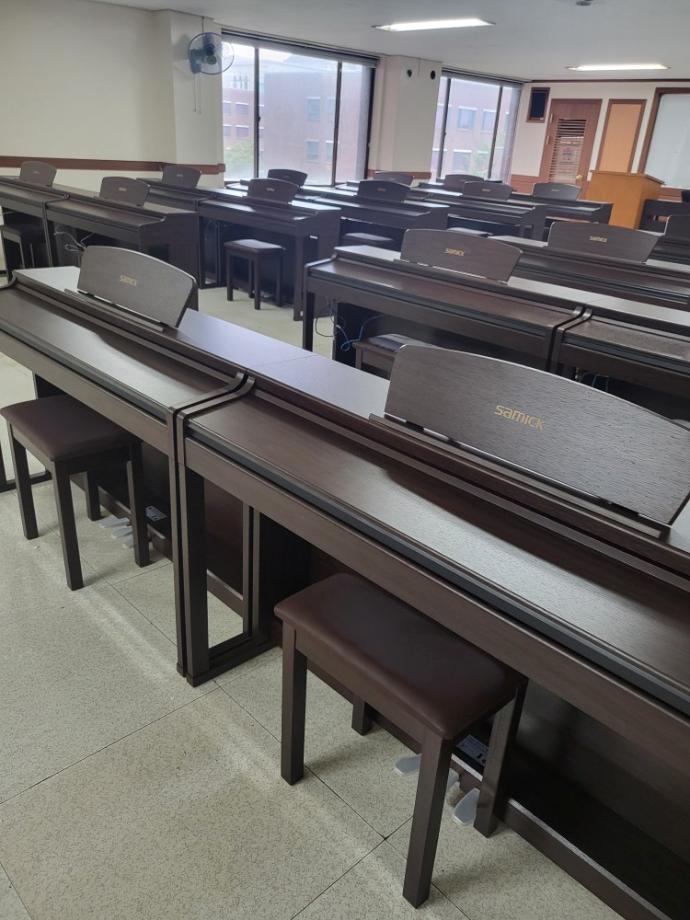 이번 환경개선은 보다 원활한 학습환경 조성을 위해 대학혁신지원사업비를 지원받아 진행되었으며, 그간 사용하던 노후 디지털피아노를 대신하여 최신형 디지털피아노 25대가 구비된 바 있습니다.