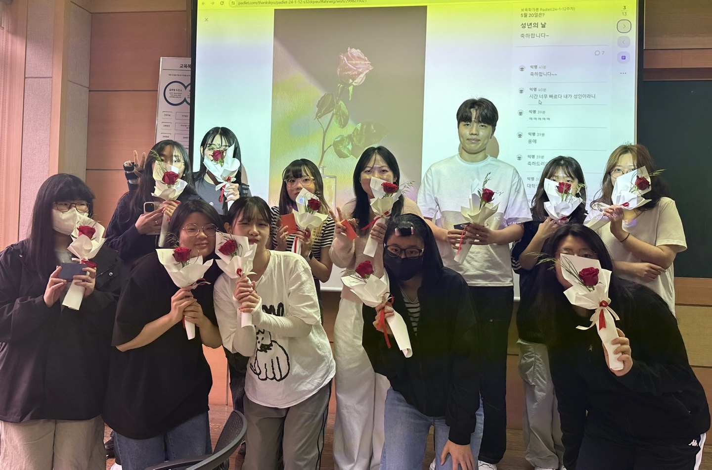 24학년도 성년의 날을 진심으로 축하합니다. 지난 주 20일, 수업시간에 저희 임원들이 깜짝 방문하여 성년의 날 기념 꽃과 편지를 전달 하였습니다. 우리 아동교육학과 24학년도 친구들의 성년의 날을 진심으로 축하드리고,어른이 된 재학생들이 뒤에서 응원하겠습니다. 항상 좋은 일만 가득하길 바랍니다. |