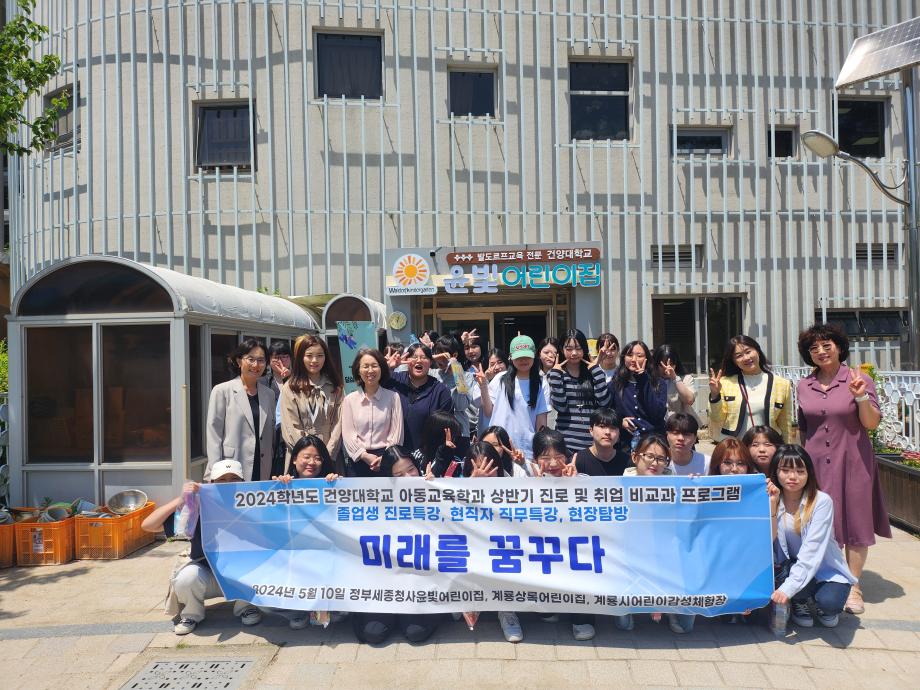 2024년 건양대학교 아동교육학과 상반기 진로 및 취업 비교과 프로그램으로 5월 10일 교외 수업으로 윤빛 어린이집 및 계룡시 감성 체험장 기관 탐방을 다녀왔습니다. 화창한 날씨에 진행한 기관 탐방 순서는