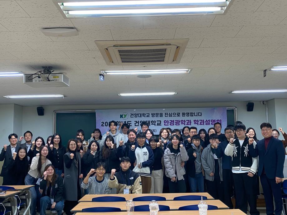 2024년 11월 23일 토요일에 수시전형 지원자 대상으로 건양대학교 안경광학과 학과설명회를 진행하였습니다. 재학생들의 학교생활 소개 및 졸업생들의 취업출구 소개, 건양대병원 안과검사실 견학 그리고 교수님들과 학부형님들과의 질의응답 시간을 통해 필요한 정보들을 많이 얻어가셨으리라 생각됩니다. 지원자 학생들 및 학부형님들 그리고 참여하신 교수님들, 재학생들, 졸업생들 모두 수고많으셨습니다. |