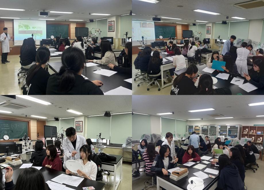 논산여자고등학교 학생들 대상으로 두 시간 가량의 '미리 가보는 대학프로그램'을 진행하였습니다. 안경광학과에 관심이 있는 학생들 대상으로 체험 프로그램의 기회를 제공하고, 올바른 진로 정보를 제공할 수 있는 시간이었습니다. 프로그램 진행에 참여한 도우미 재학생과 담당 교수님께 수고의 말씀을 전해드립니다. |