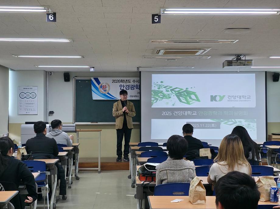지난 11월 22일, 우리 안경광학과는 2025학년도 수시 최초합격자 및 예비합격자 학생들과 학부모님을 모시고 학과설명회를 개최했습니다. 이번 행사는 예비 신입생들에게 우리 대학의 우수한 교육 환경을 소개하고, 졸업 후의 다양한 진로를 구체적으로 제시하여 미래 안보건전문가로서의 자부심을 고취하기 위해 마련되었습니다. |