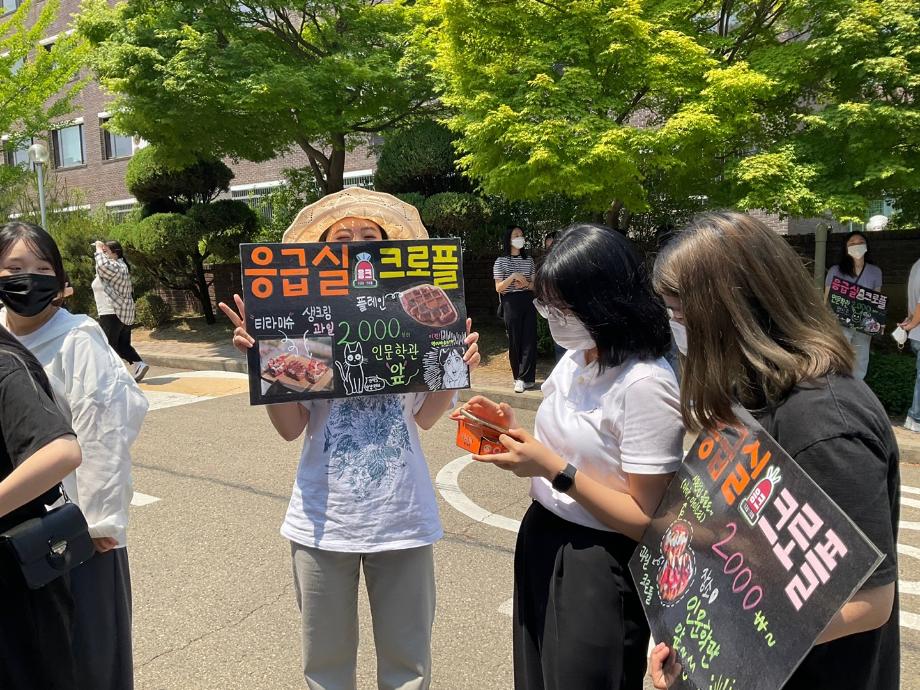응급구조학과+크로플을 따서 응크로플이라는 이름으로 학생회와 축제에 참여한 재학생들과 함께 크로플과 음료를 판매하였습니다~ |