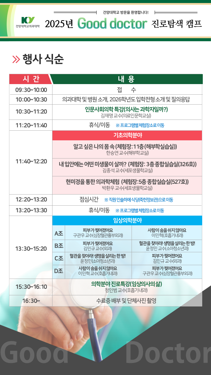 ★☆2025년 Good doctor 진로탐색캠프 세부 프로그램 일정★☆