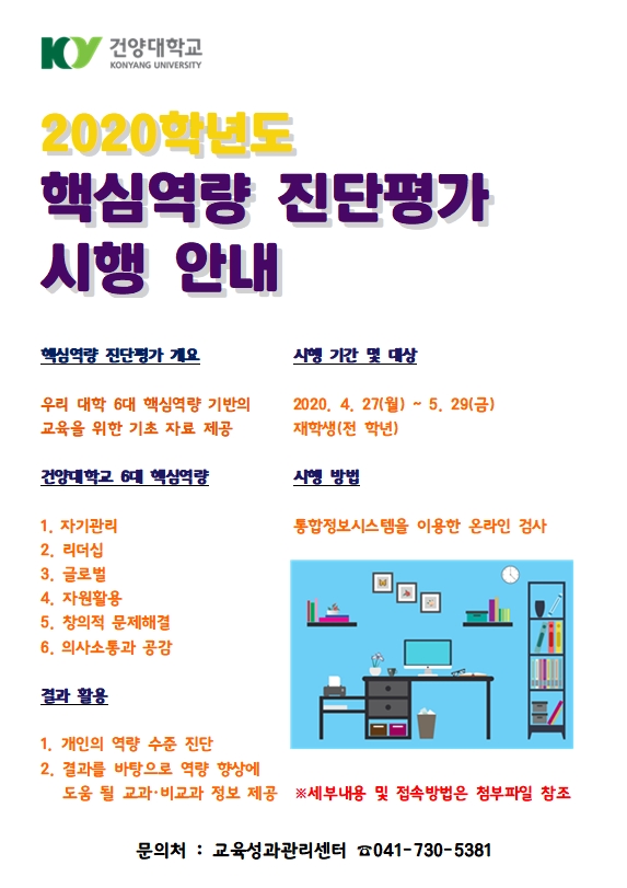 | 제목 | 2020학년도 재학생 핵심역량 진단평가 시행 안내 | ||||
