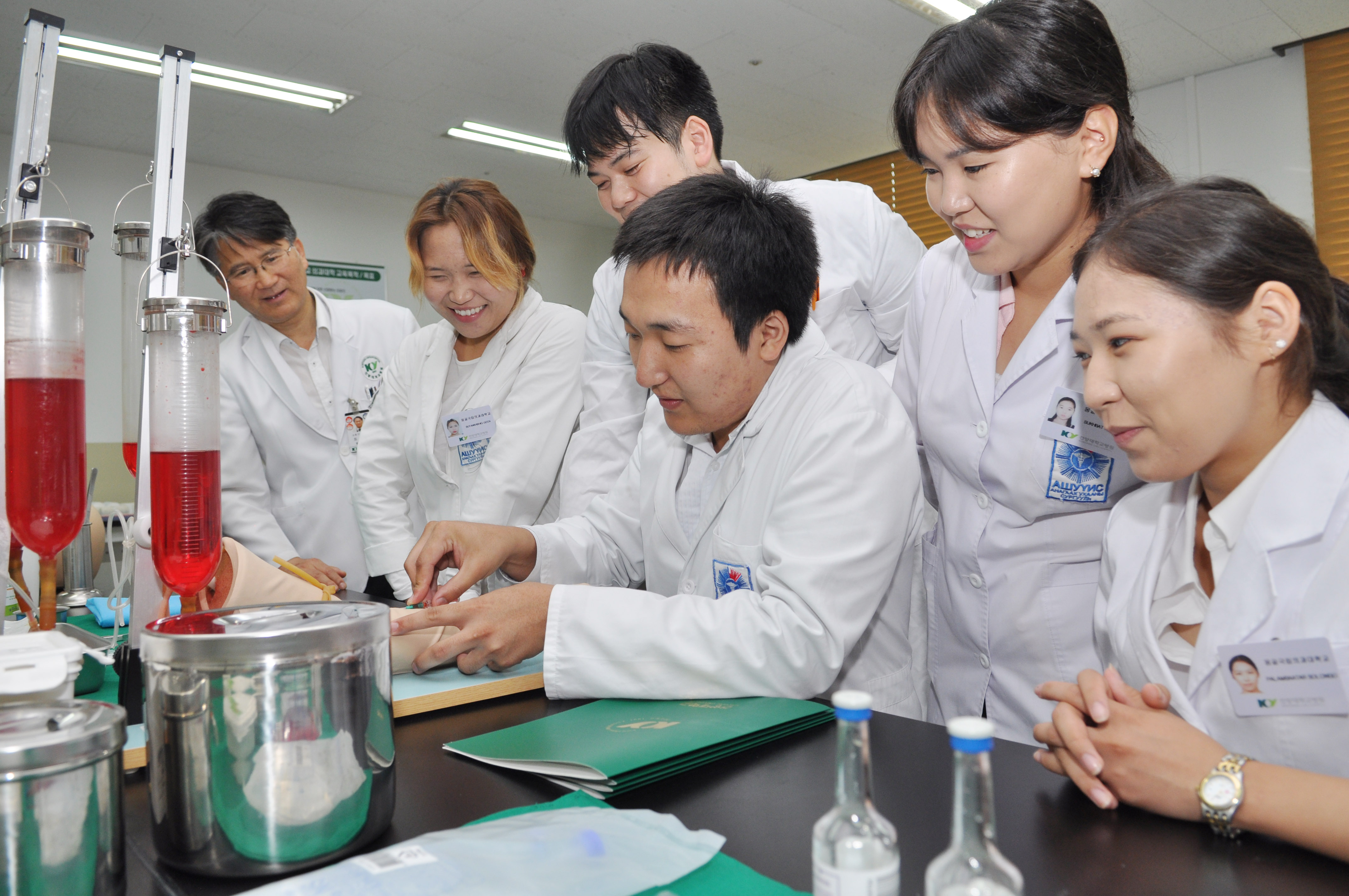 최용우 건양대 의과대학 학장과 함께 실습중인 몽골학생.jpg