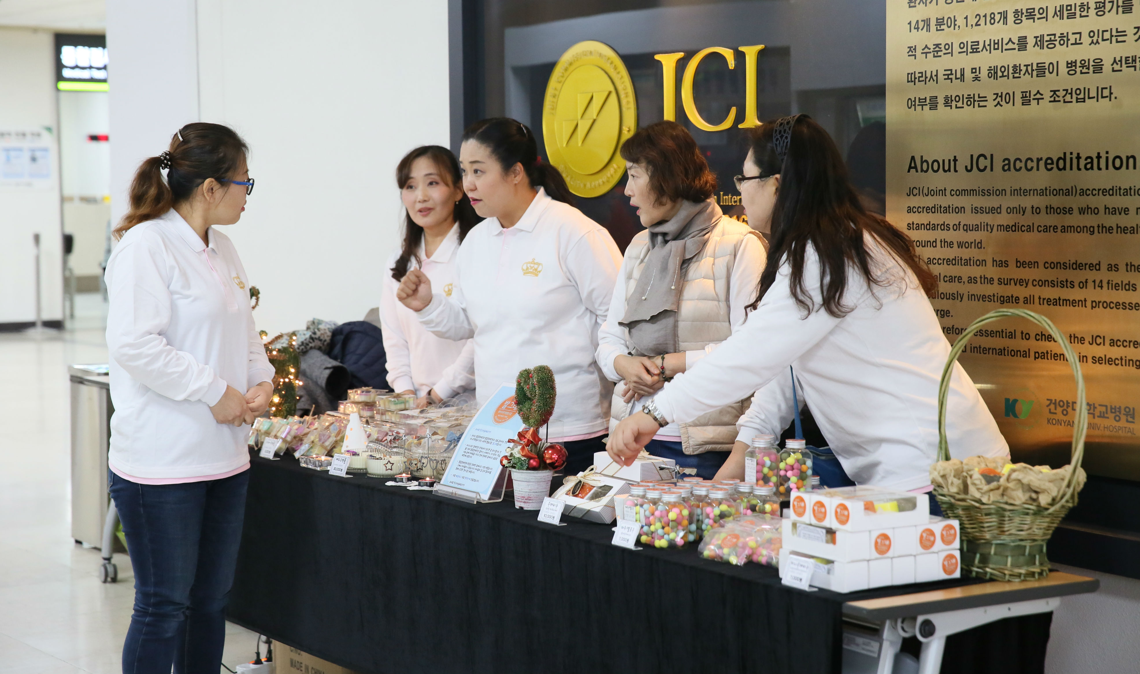 건양대학교(총장 정연주) 링크플러스 사업단이 ‘발달장애인과 함께 그리는 미래’라는 뜻의 발달장애인 자녀를 가진 부모님들과 함께 설립한 예비 사회적기업인 ‘발그래’가 10일 건양대병원 1층 로비에서 수제비누 및 수제청 판매행사를 가졌다.