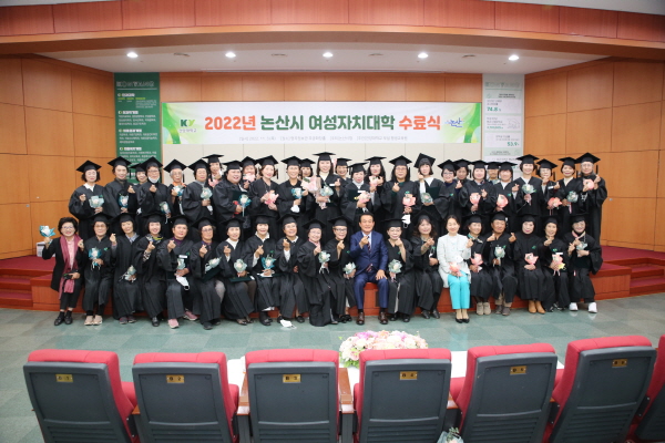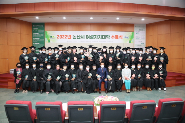 건양대학교(총장 김용하) 평생교육원(원장 이시우)은 3일 오후 백성현 논산시장과 김정신 건양대 인재개발부총장 등이 참석한 가운데 건양대 논산 창의융합캠퍼스 명곡정보관 무궁화장 홀에서 “2022년 논산시 여성자치대학” 수료식을 진행했다.