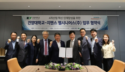 건양대-지멘스 헬시니어스, 4차산업 혁신 인재양성 업무협약 체결 건양대학교(총장 김용하)와 지멘스 헬시니어스(SIEMENS Healthineers)가 15일 건양대 메디컬캠퍼스 죽헌정보관에서 4차산업 혁신 인재양성을 위한 업무협약 체결식을 가졌다. 이날 체결식에는 건양대 김용하 총장, 오도창 산학협력 부총장(LINC3.0사업단장), 홍영기 산학협력단장과 지멘스 헬시니어스 한국법인 이명균 대표이사, 김도영 본부장, 최총천 팀장, 김보라 팀장 등 양 기관의 관계자들이 참석했다. 이날 협약 체결에 따라 양 기관은 산학교육 및 연구 협력을 위해 ▲의료기기 전문인력 육성을 위한 인턴십 프로그램 운영 ▲표준현장실습등을 통한 우수 인력양성 프로그램 운영 ▲산·학 공동연구 및 기술개발 ▲재직자 교육 프로그램 운영 등 우수인재양성 지원 및 공동관심분야 연구 협력을 위해 지속적으로 교류하기로 했다. 또한 건양대는 이번 협약을 계기로 3단계 산학연협력 선도대학 육성사업 추진을 위해 건양대 특화분야인 메디바이오 분야의 공동연구 및 기술개발과 산학 연계교육 프로그램 교류를 지속적으로 확대할 예정이다. 김용하 총장은 “이번 협약으로 산·학의 상호 강점을 교류하여 다양한 교육 프로그램을 개발하고 인재양성 및 헬스케어 발전에 선도적인 역할을 할 수 있는 공동 연구를 기대한다”고 밝혔다. 지멘스 헬시니어스 이명균 대표이사는 “메디바이오 분야의 교육 연구 및 협력 업무를 진행함으로써 추후 4차산업 혁신 인재양성과 공동 관심분야의 성장을 이룰 수 있을 것으로 기대한다”고 말했다.