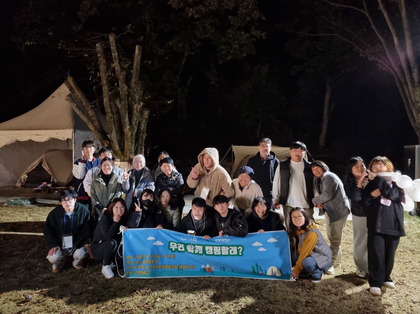 논산 복합문화공간 숩쏙 캠핑장에서 가족캠핑 여행을 진행했다. 여행을 통해 기쁨을 나누고 행복을 누리자는 의미인 여행나누리는 건양대 초등특수교육과 하주현 교수와 재학생들로 구성돼 있으며