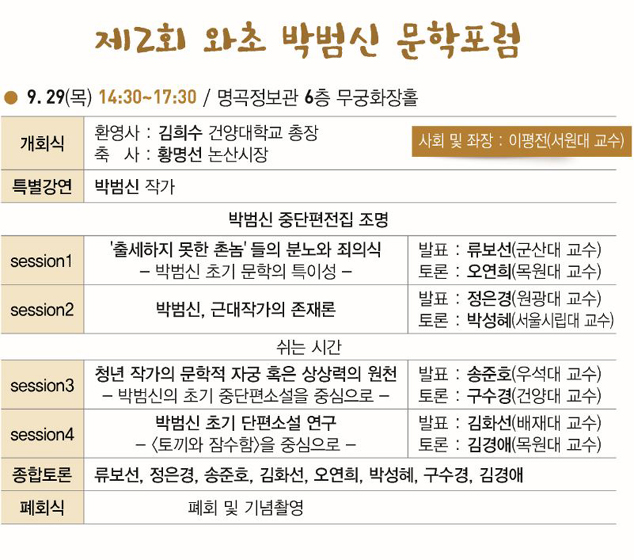 | 제목 | 제2회 와초 박범신 문학포럼 안내 | ||||
