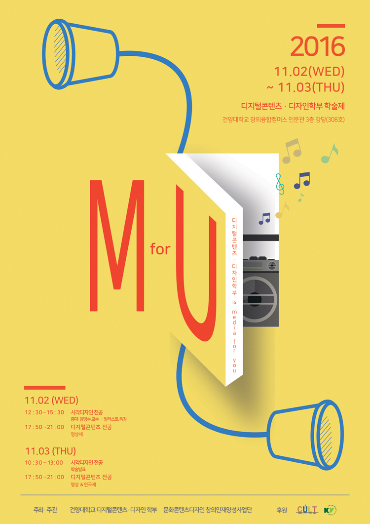 주최: CK–1 문화콘텐츠디자인 창의인재 양성사업단 주관: 디지털콘텐츠·디자인학부 후원: 교육부, 한국연구재단, 건양대학교, 논산시 홍보담당관 문의 : 041)730-5345