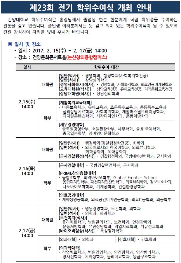 | 제목 | 제23회 전기 학위수여식 개최 안내 | ||||