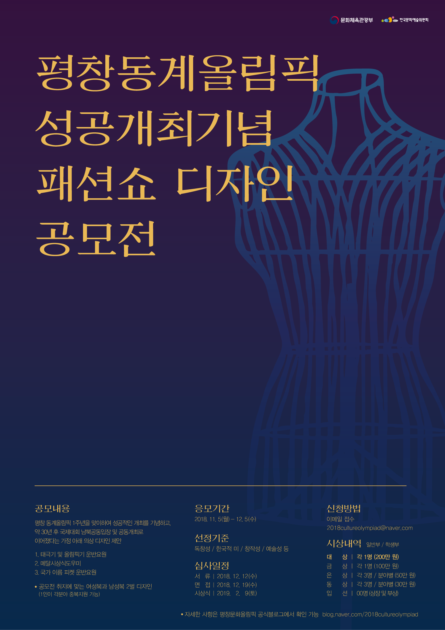 | 제목 | 2018 평창 동계올림픽 성공개최 기념 패션쇼 디자인 공모전 안내 | ||||