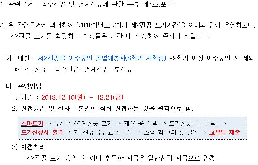 | 제목 | 2018학년도 2학기 제2전공 포기기간 안내 | ||||