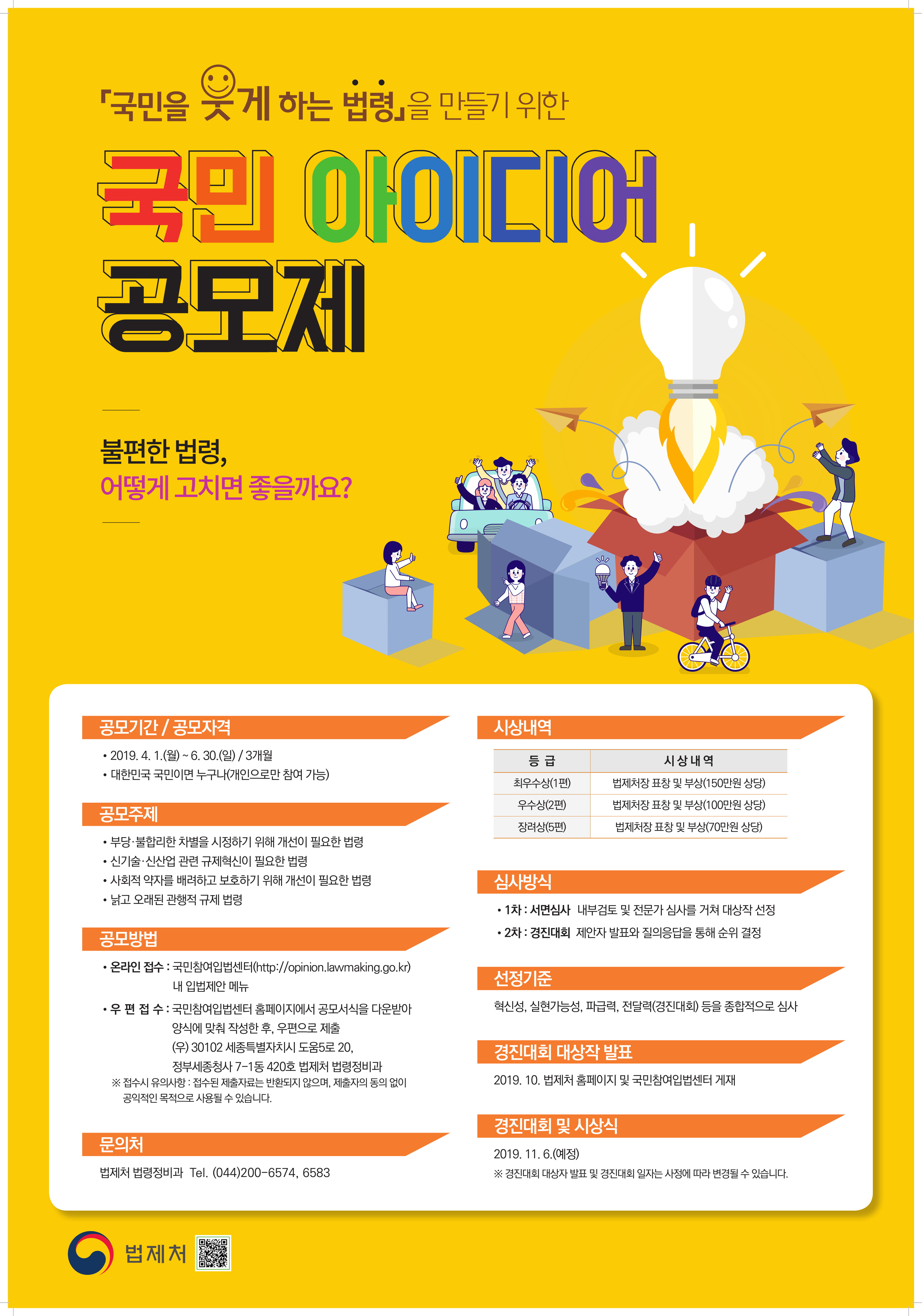 | 제목 | 「국민을 웃게 하는 법령」을 만들기 위한 2019 국민 아이디어 공모전 안내 | ||||