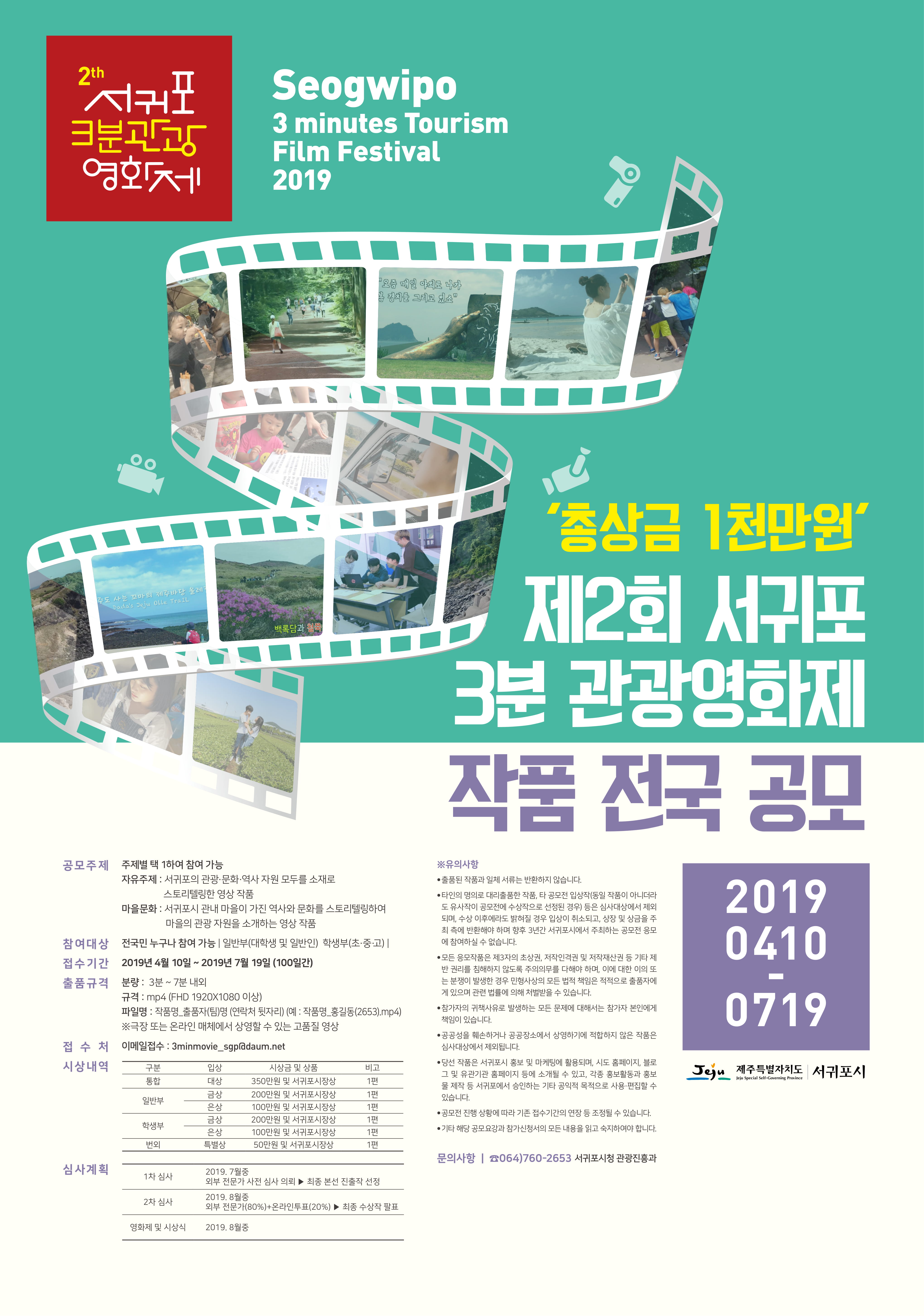 | 제목 | 제2회 서귀포 3분 관광영화제 작품 공모 안내 | ||||