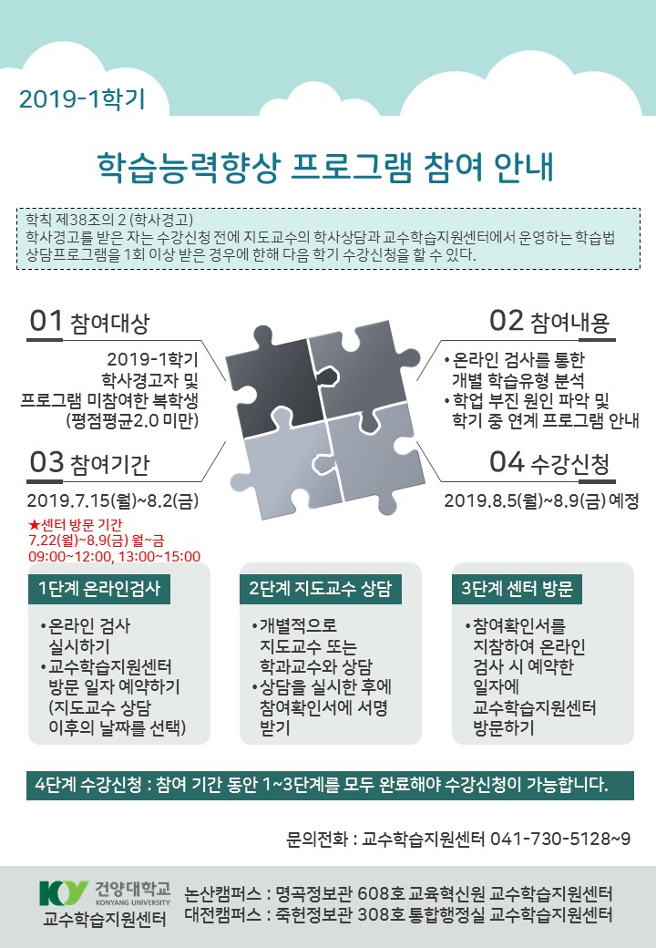 | 작성자 | 교수학습지원센터 | 등록일 | 2019-07-11 | 조회 | 10247 |