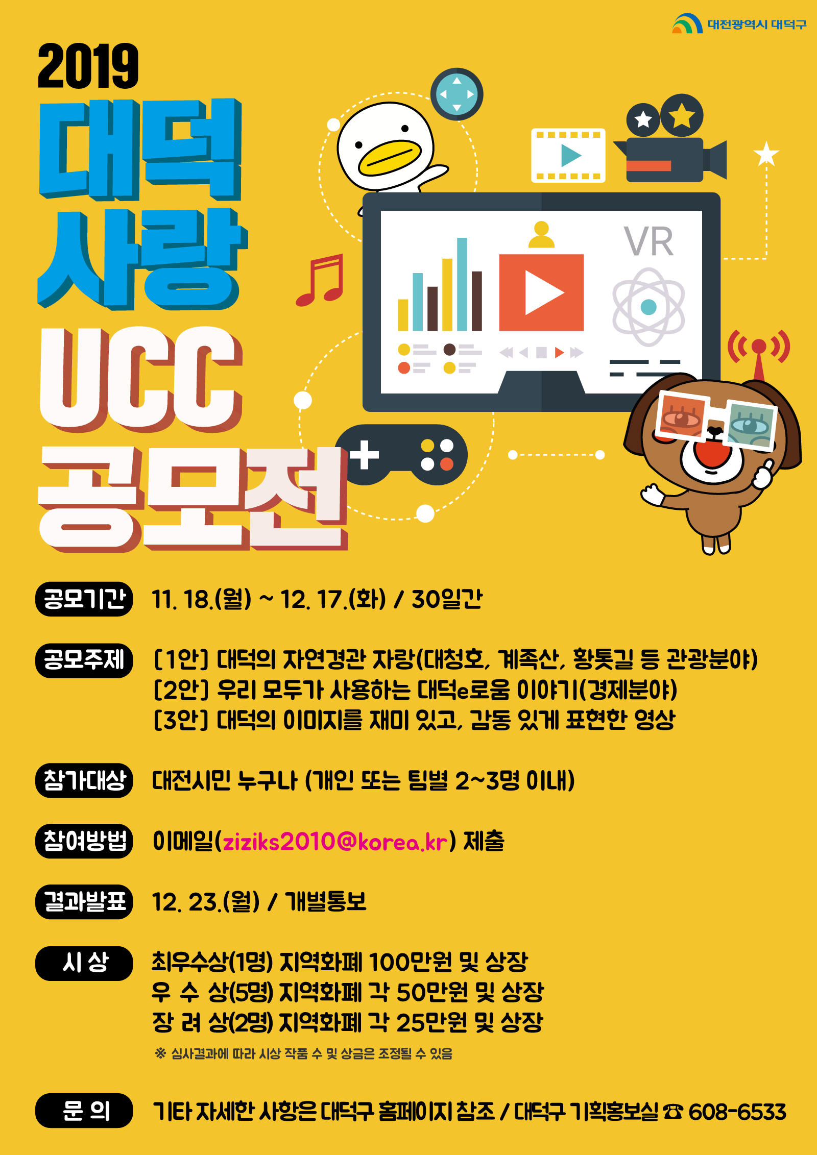 | 제목 | 2019 대덕사랑 UCC 공모전 안내 | ||||