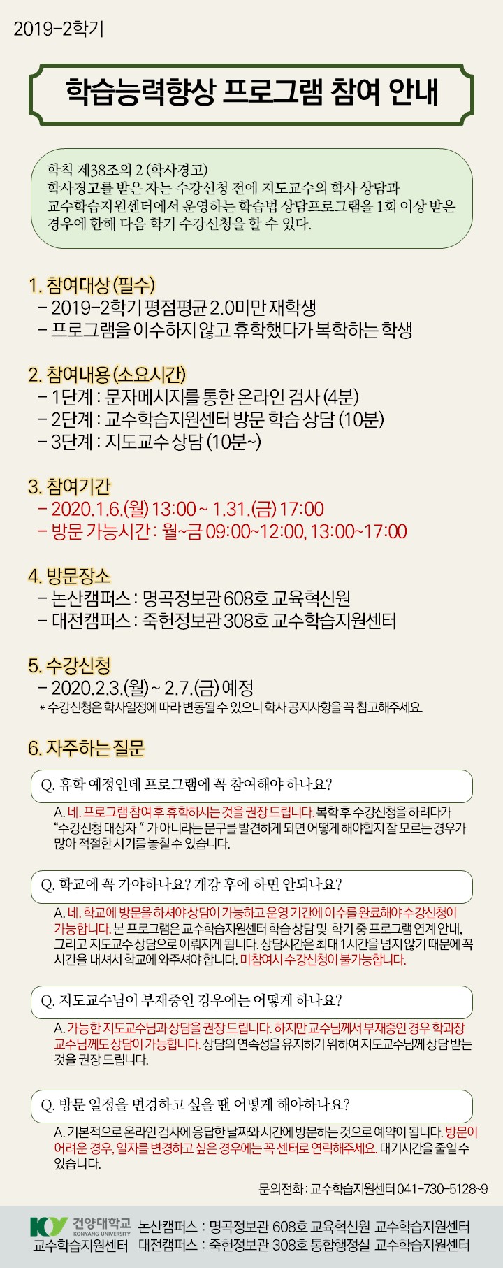 제목 (필수) 2019-2학기 학습능력향상 프로그램 안내