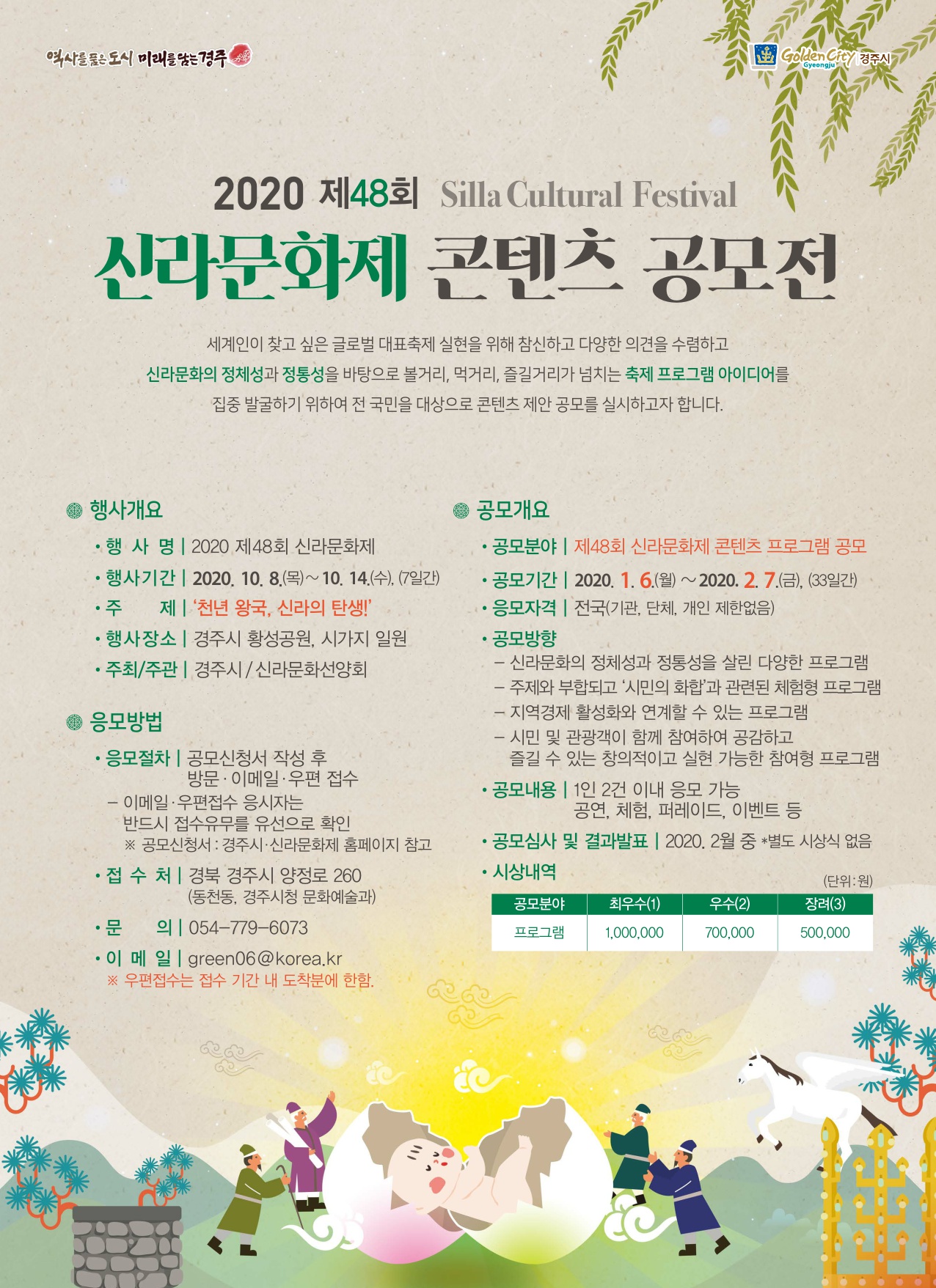 | 제목 | 2020 제48회 신라문화제 콘텐츠 공모전 안내 | ||||