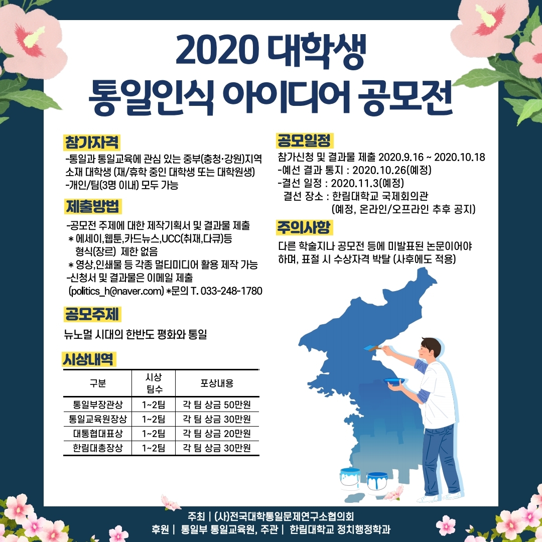| 제목 | 2020 대학생통일인식아이디어공모전 안내 | ||||