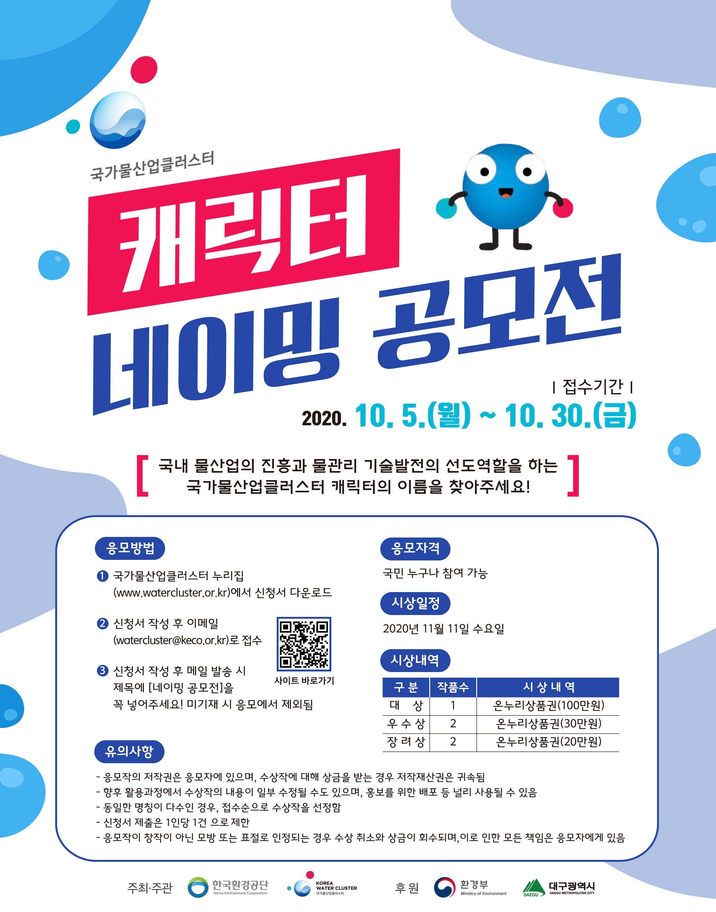| 제목 | 국가물산업클러스터 캐릭터 네이밍 공모전 안내 | ||||
