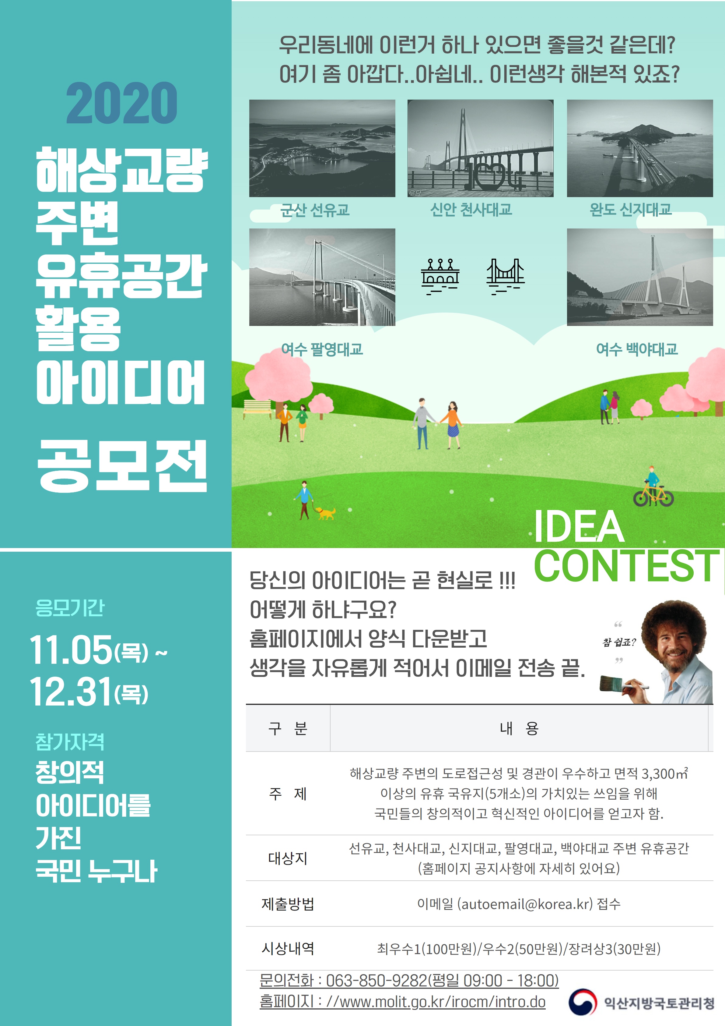 | 제목 | 해상교량 주변 유휴공간 활용 아이디어 공모전 안내 | ||||