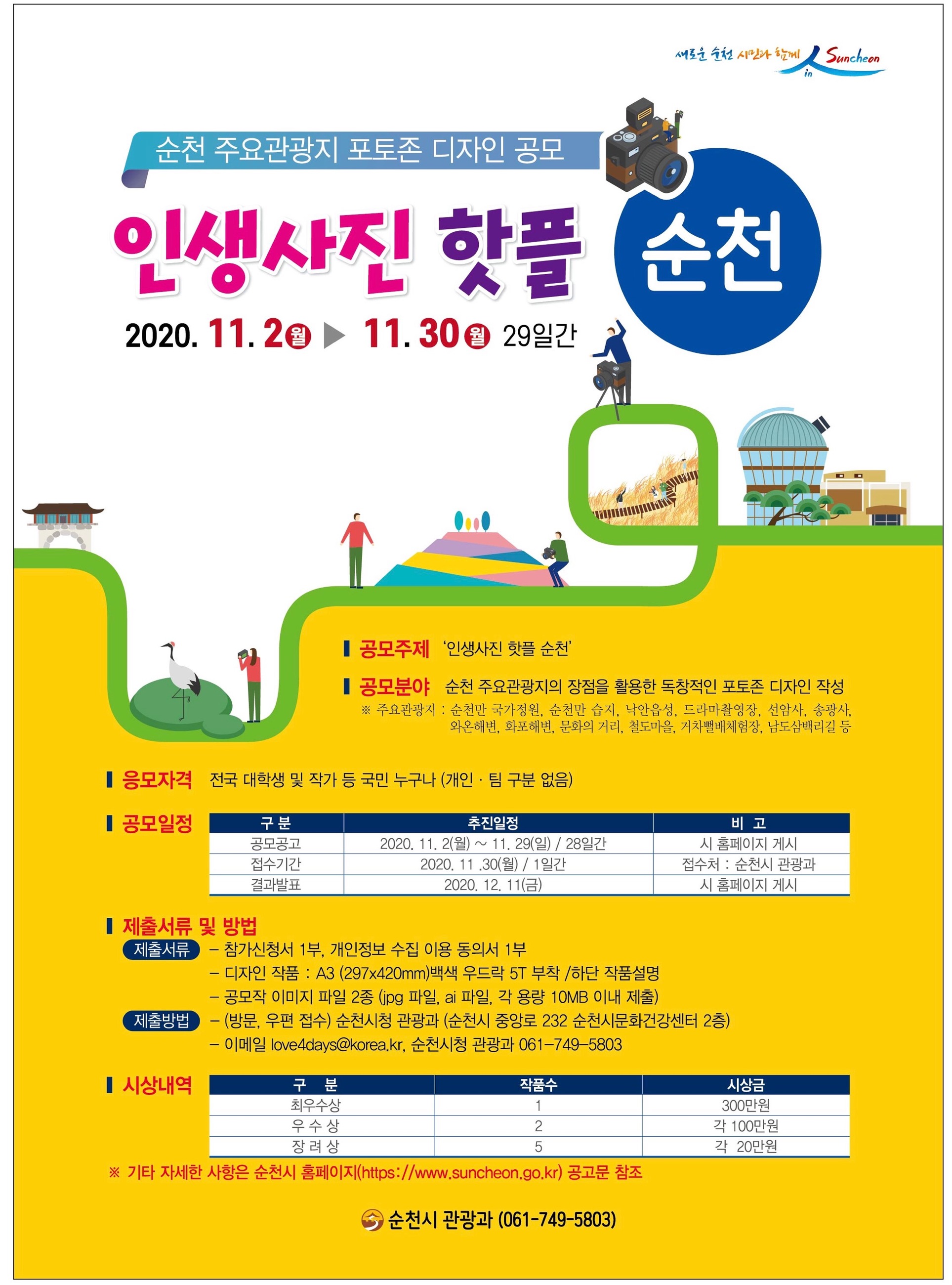 | 제목 | 순천 주요관광지 포토존 디자인 공모전 안내 | ||||