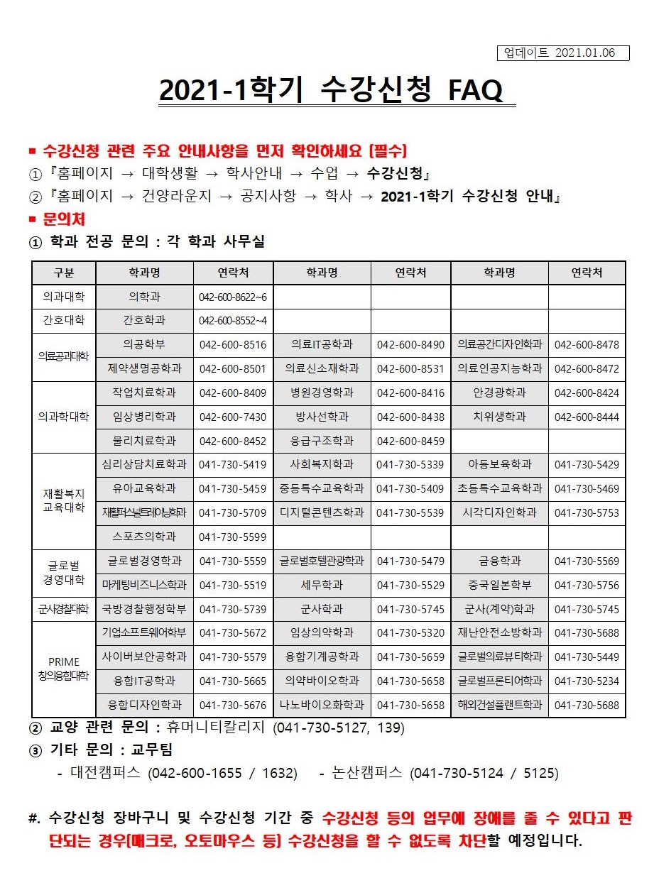 | 제목 | 2021학년도 1학기 수강신청 FAQ 안내 | ||||