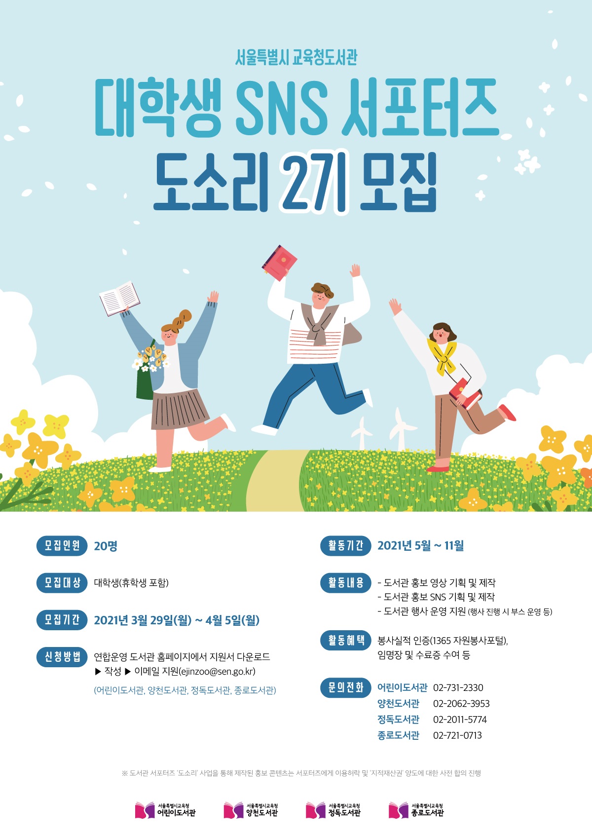 | 제목 | 2021년 제2기 서울특별시교육청도서관 대학생 SNS 서포터즈 『도소리』 모집 안내 | ||||