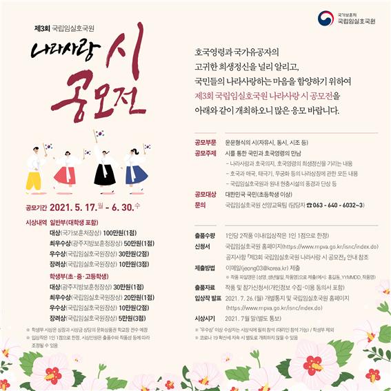 | 제목 | 『제3회 국립임실호국원 나라사랑 시 공모전』 안내 | ||||