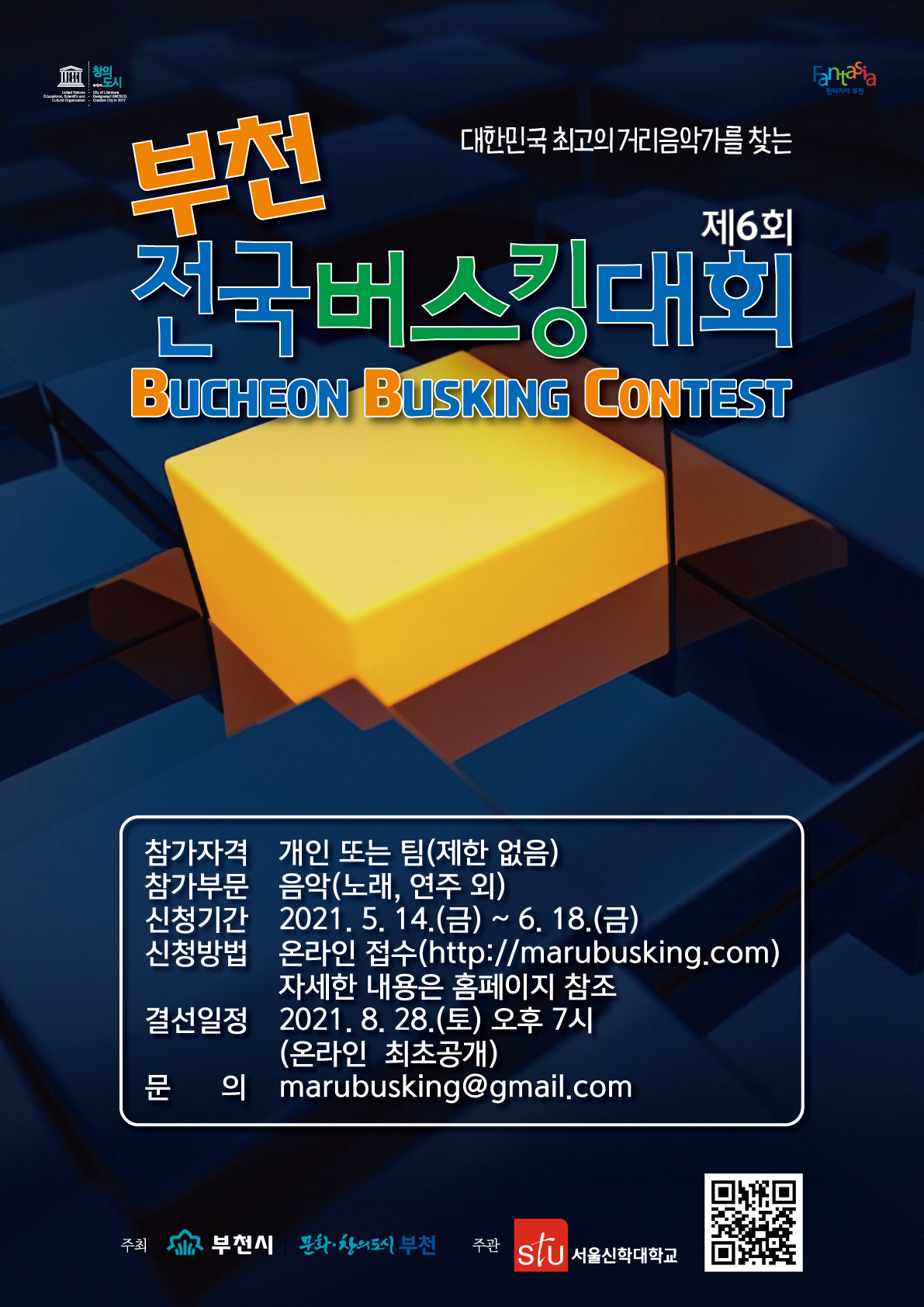 | 제목 | 「제6회 부천전국버스킹대회」참가신청 안내 <온라인 개최> | ||||