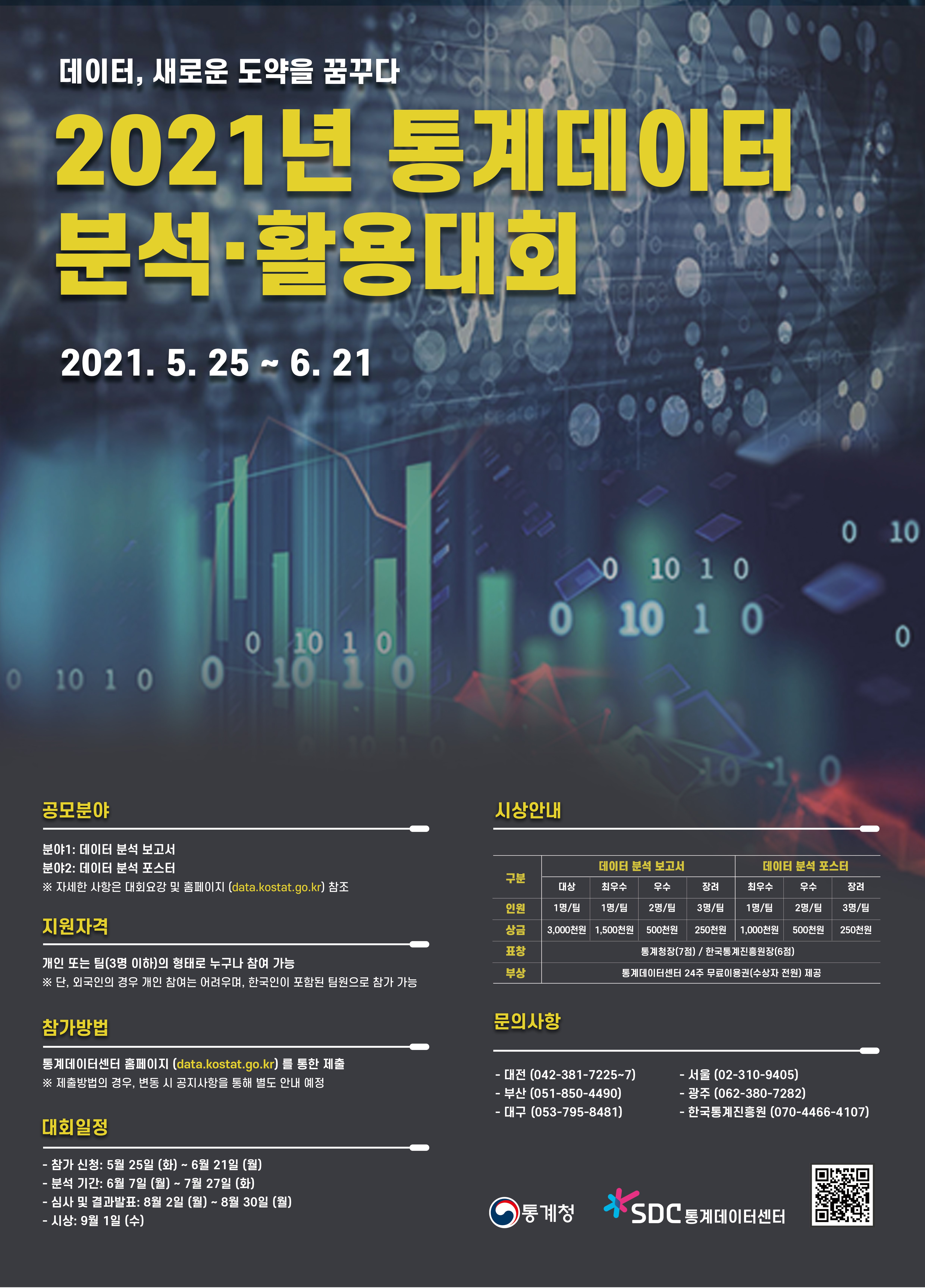 | 제목 | 2021년 통계데이터 분석·활용대회 안내 | ||||