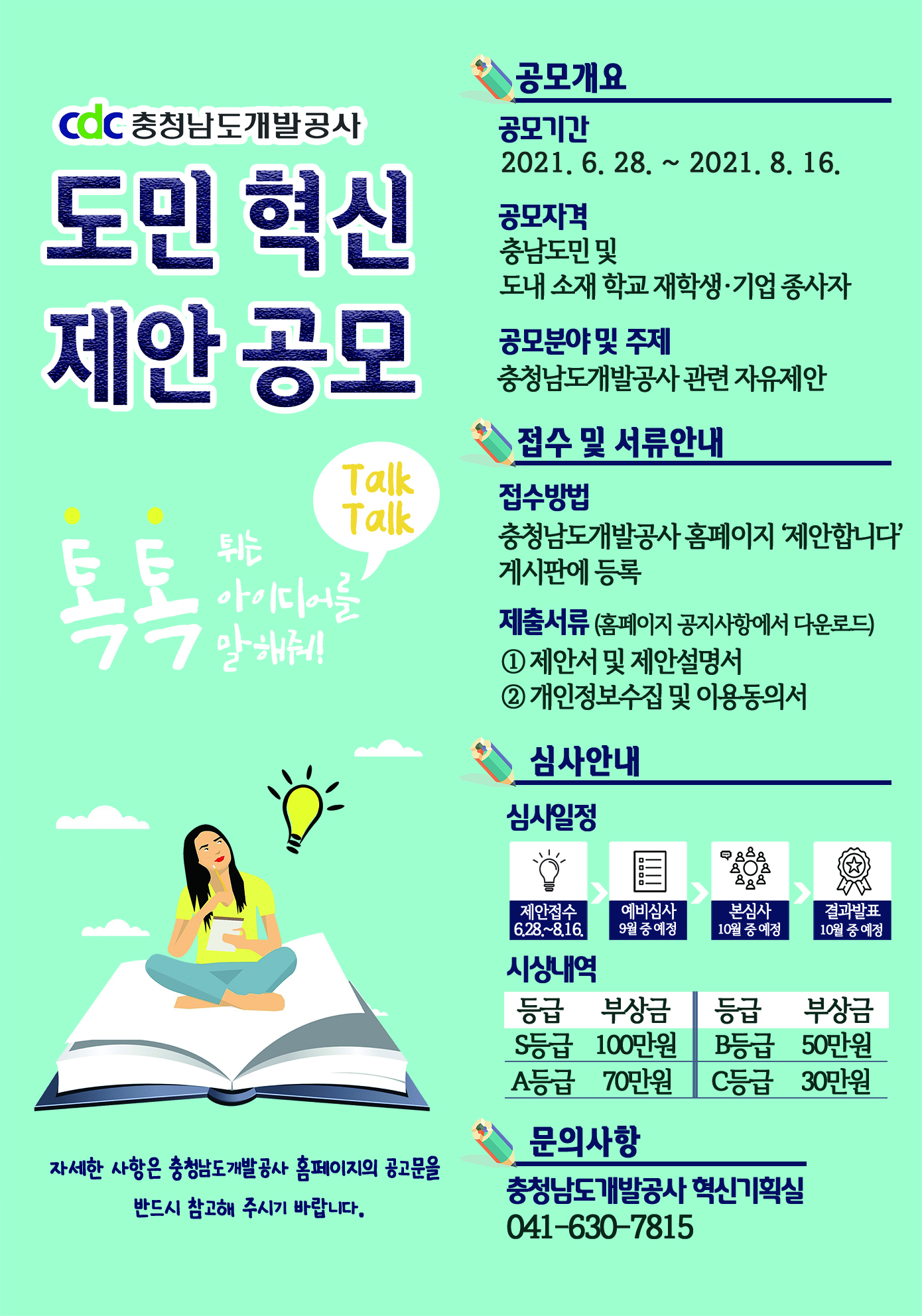 | 제목 | 충청남도개발공사 도민 혁신 제안 공모전 안내 | ||||