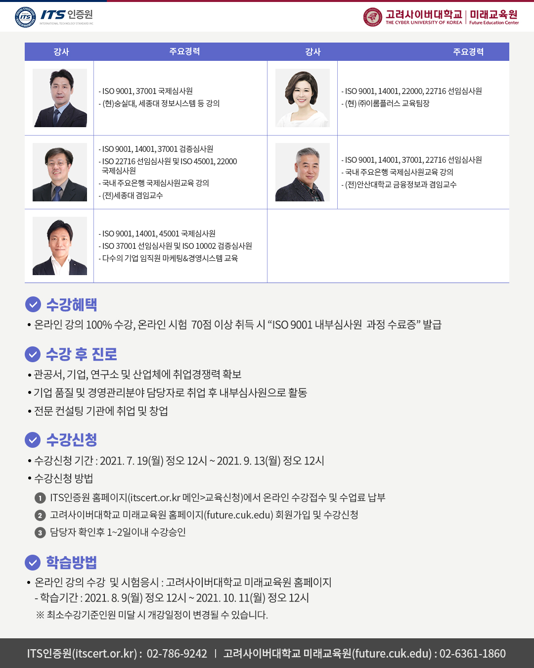 | 제목 | ISO 9001(품질경영시스템) 내부심사원 과정 안내 | ||||