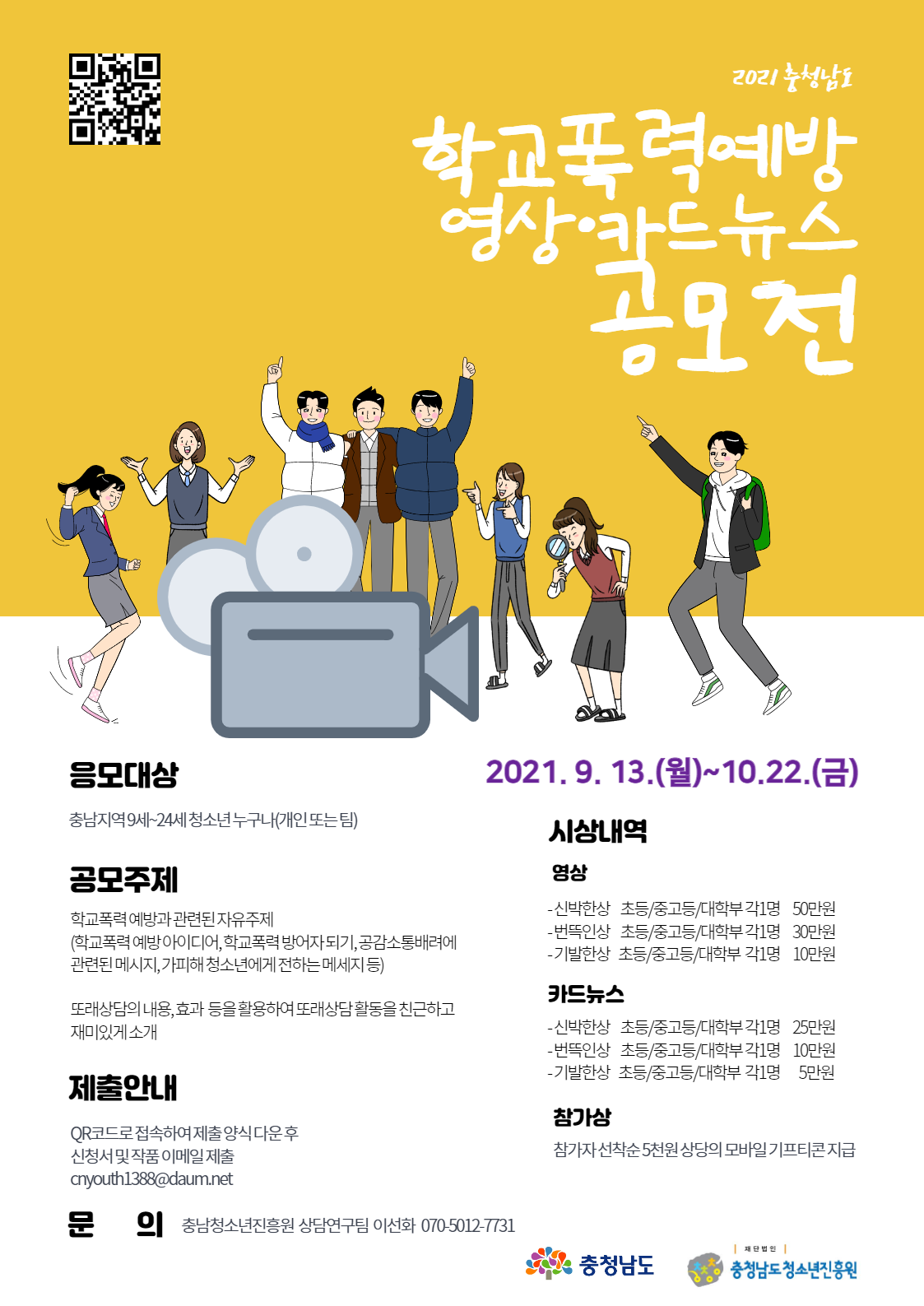 | 제목 | 2021년 충청남도 학교폭력 예방 온라인 콘텐츠 공모전 안내 | ||||