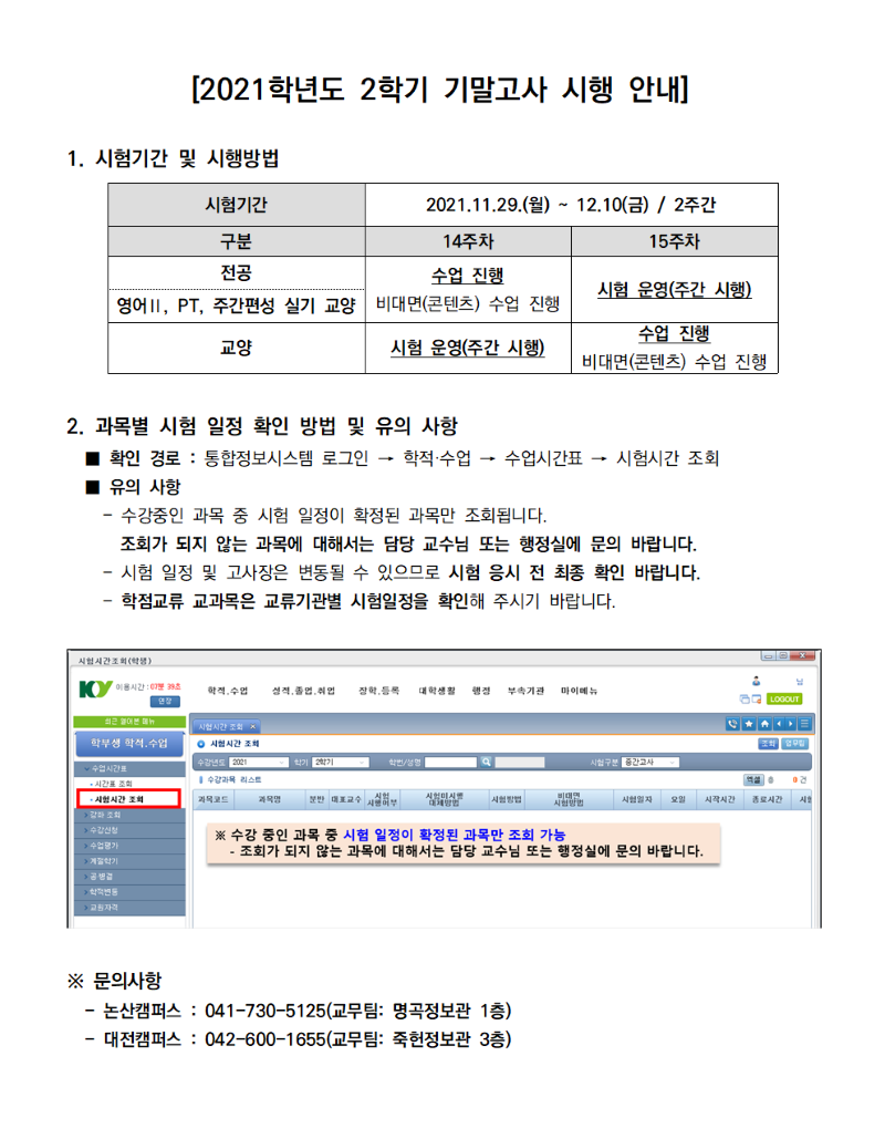 | 제목 | 2021학년도 2학기 기말고사 시행 안내 | ||||