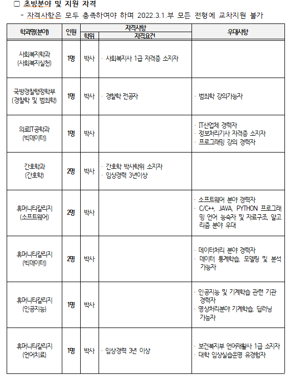 | 제목 | 2022-1학기(2차) 전임교원 초빙 공고 | ||||