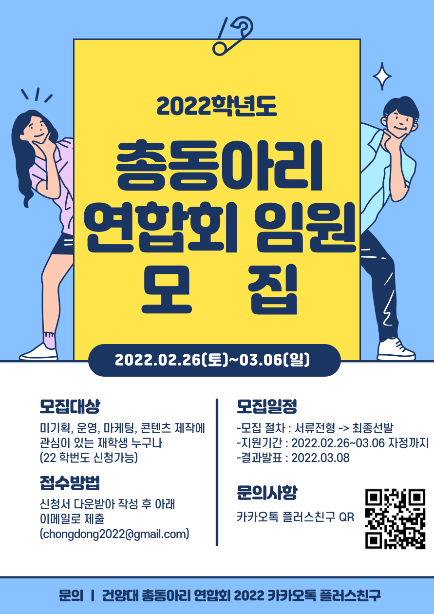 ★ 안녕하세요! 2022학년도 총동아리연합회 입니다. 행사 및 동아리 활성화를 위해 힘써주실 <총동아리연합회 임원>을 모집하려 합니다.