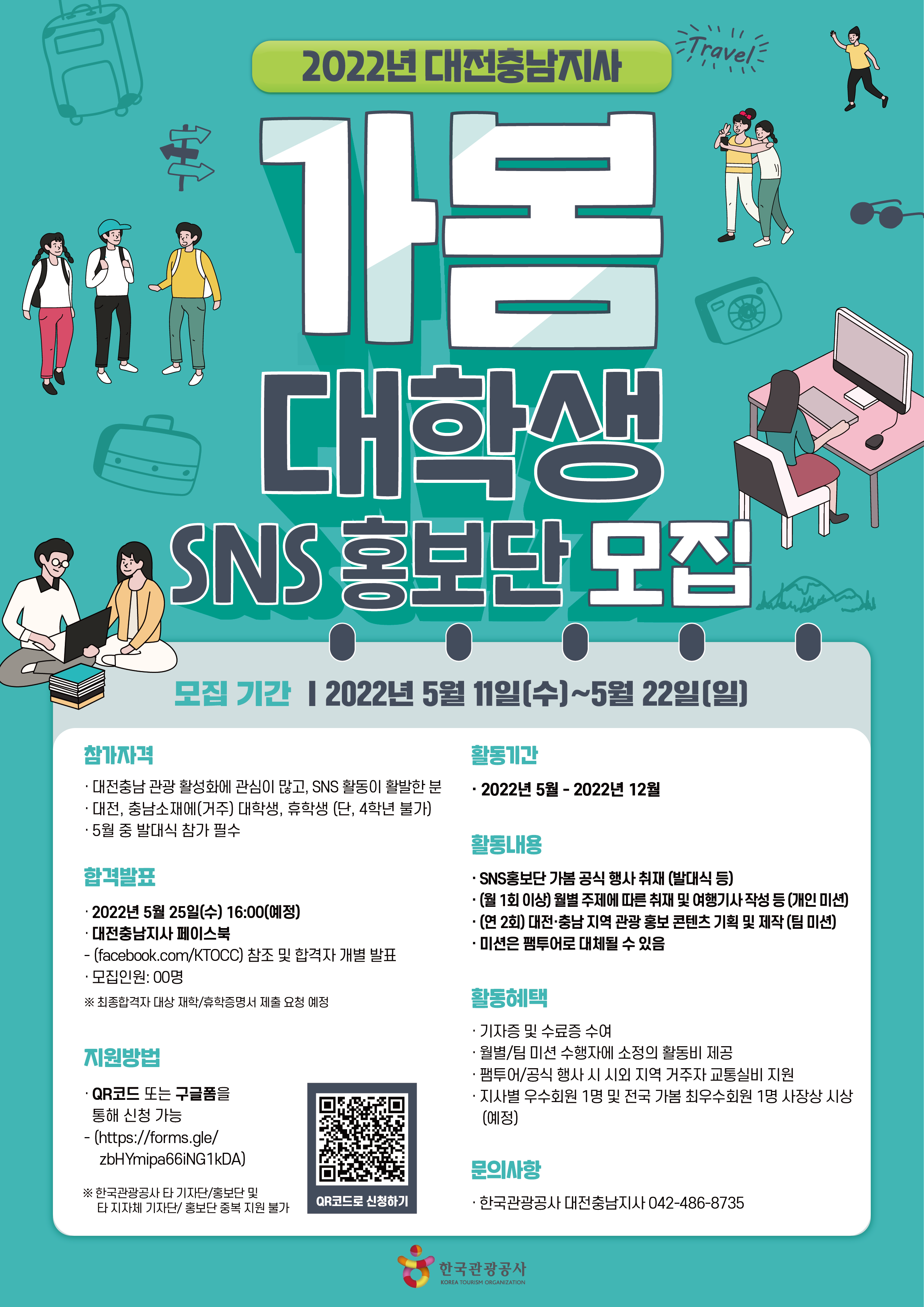 | 제목 | 2022 한국관광공사 대전충남지사 SNS홍보단 <가봄> 모집 안내 | ||||