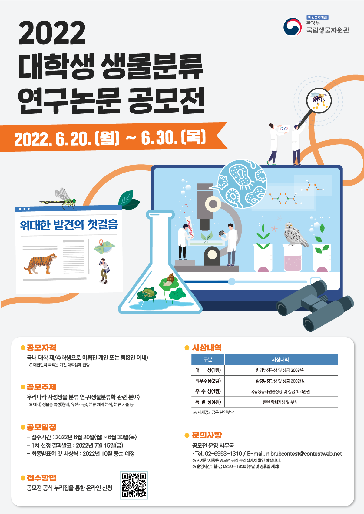 | 제목 | 2022 대학생 생물분류 연구논문 공모전 안내 | ||||