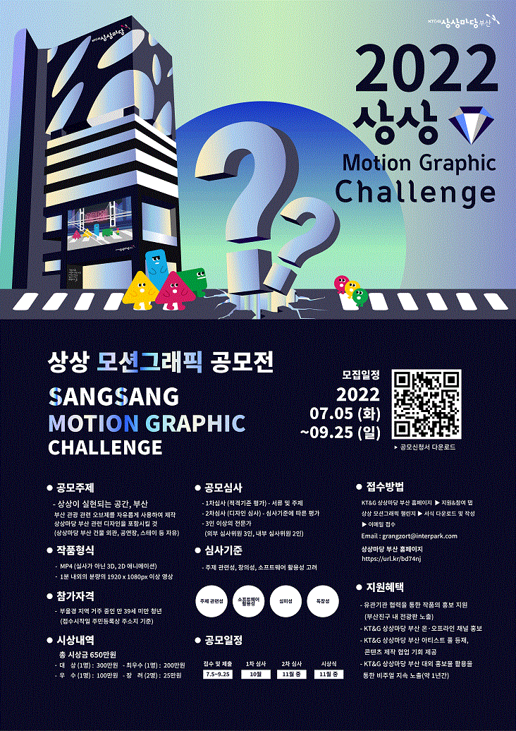 | 제목 | KT&G상상마당 부산「2022 상상 모션그래픽 챌린지 공모전」홍보 | ||||