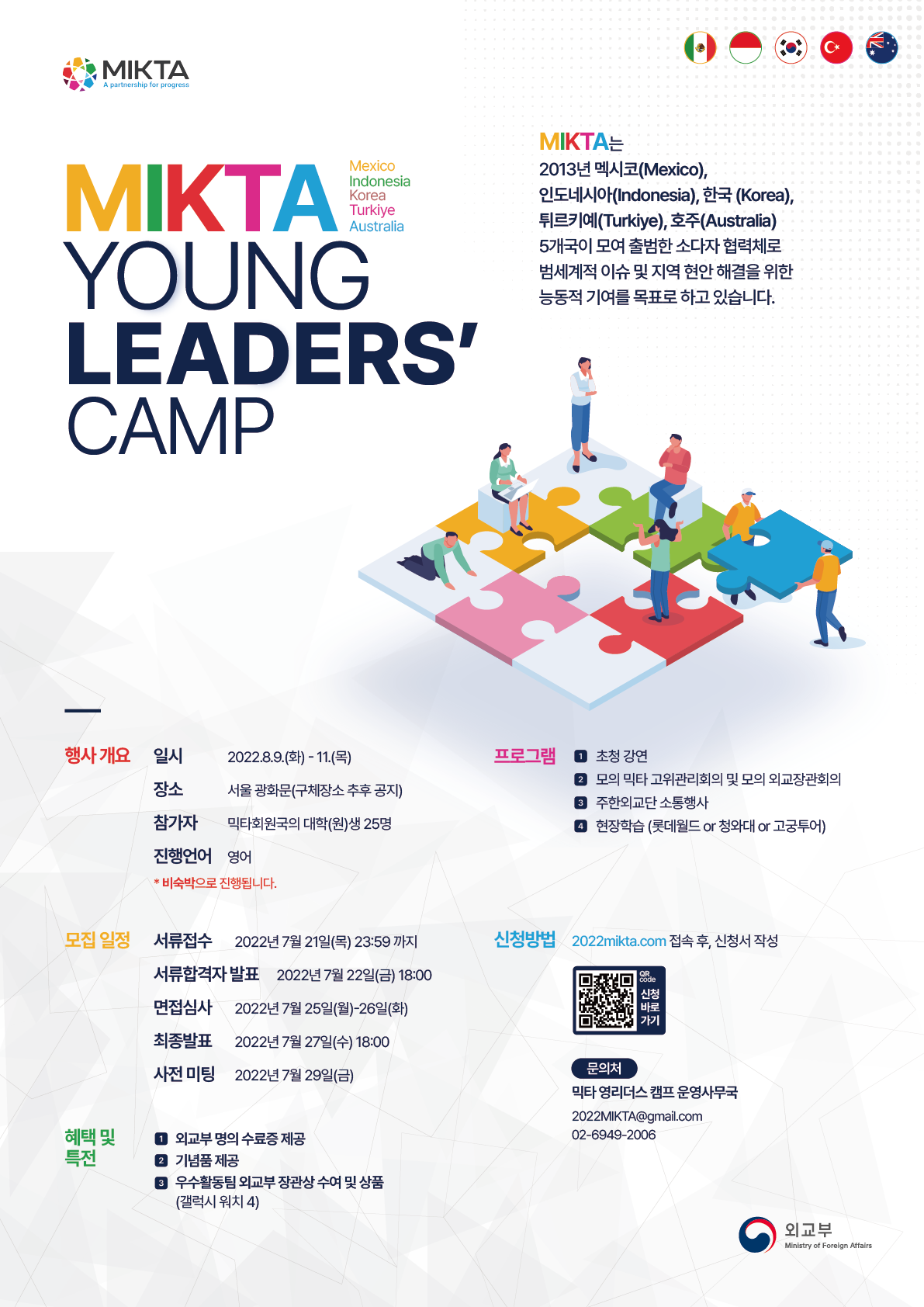| 제목 | 2022 믹타 영 리더스 캠프 참가자 선발안내 | ||||