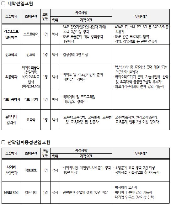 건양대학교와 함께 교육혁신을 하실 교수님을 아래와 같이 초빙합니다.